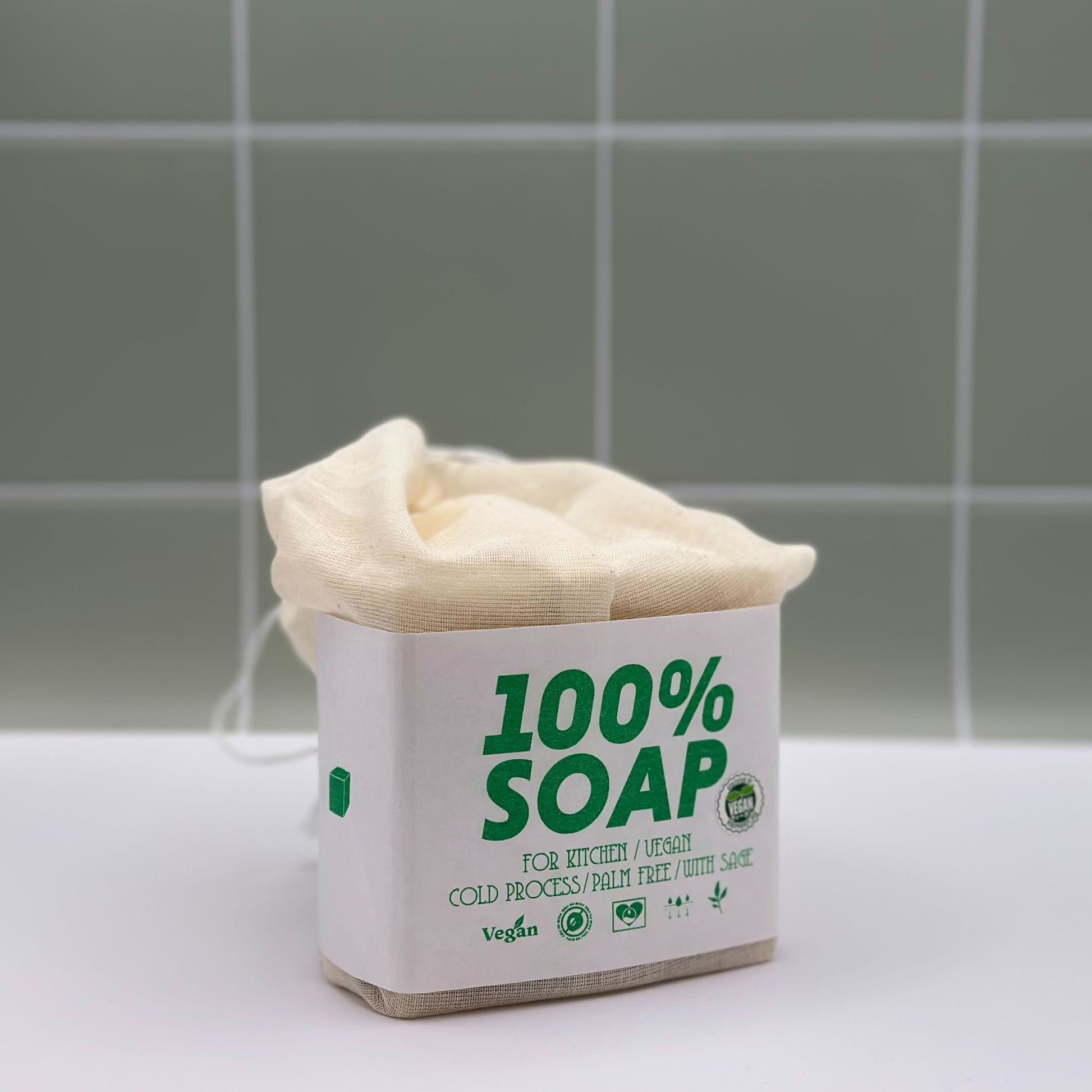 100% SOAPは、毎日の食器洗いに使える大型の無添加石鹸です。