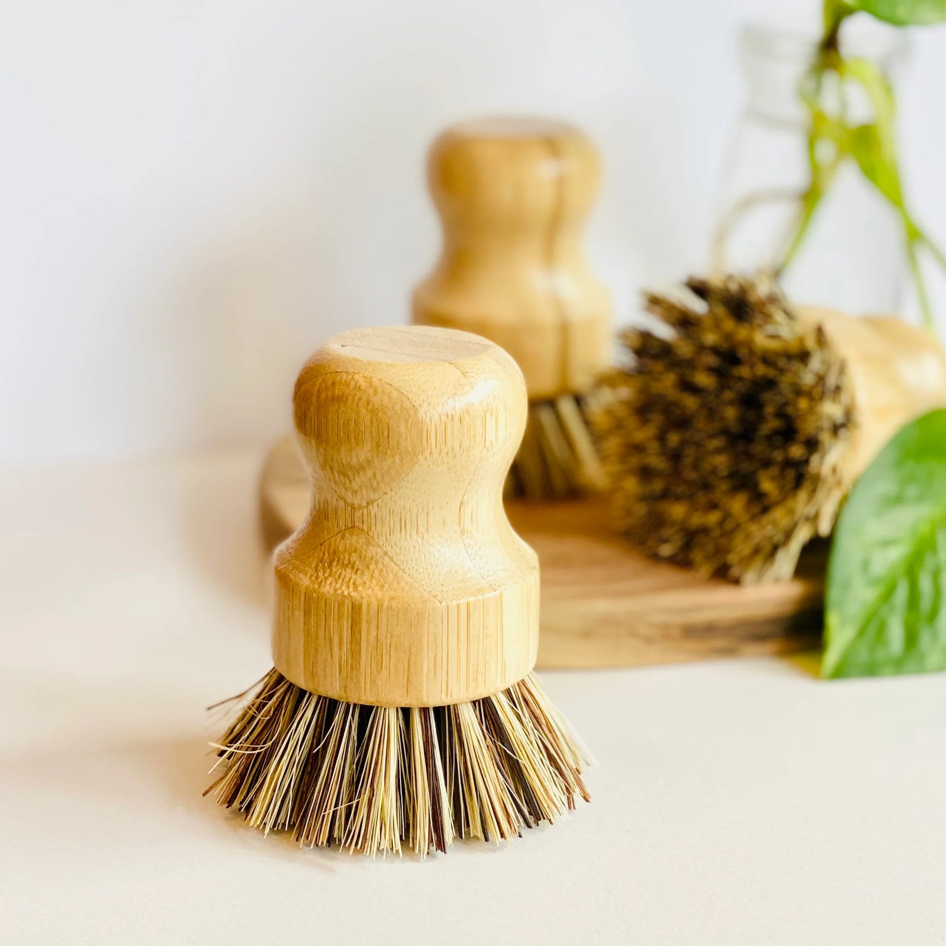 バンブー製のハンドルと硬い植物繊維のブラシでできた自然素材のスクラバーです。